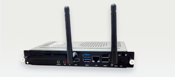 De OPS is niets minder dan een kleine computer, geïntegreerd in het scherm. Het staat toe geen externe computer te hoeven gebruiken, die men bij elke meeting zou moeten aansluiten! Het gebruik van het scherm zal dus meer ogenblikkelijk, meer onmiddellijk zijn. Het andere voordeel van deze toepassingsgerichte computer berust op het aantal bijkomende aansluittechnieken dat het aan het scherm biedt.