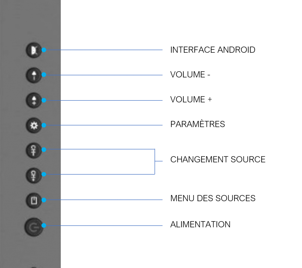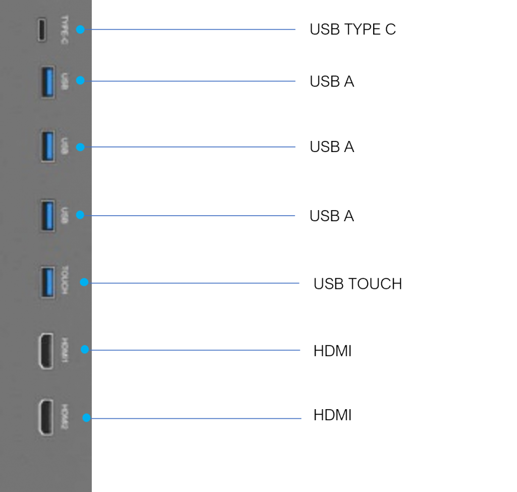Les écrans sont dotés de connectiques placées stratégiquement pour assurer une connexion rapide & intuitive*. Afin d’adapter l’écran interactif à tous les environnements, le module Android & le PC OPS permettent de multiplier les différentes entrées/sorties !