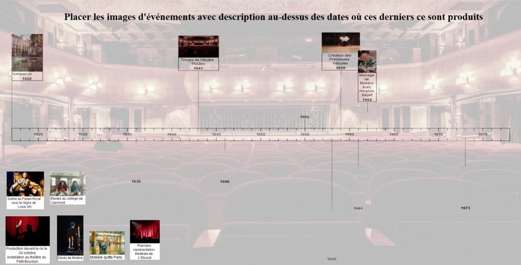 La frise commence par la naissance de Molière et s’achève pas son décès. Certains événements