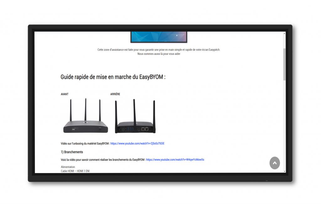 La mise en marche du EasyBYOM, bien que simple, demande de suivre un petit protocole. Il est rapide et intuitif. Pour en savoir plus sur le processus de mise en marche, Easypitch vous met à disposition un guide de mise en marche du EasyBYOM.
