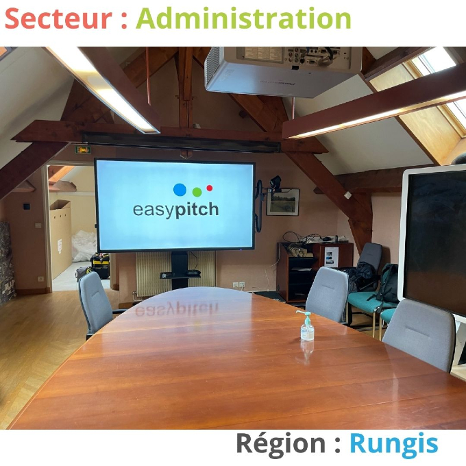 L’Installation d’ un écran interactif Android Easypitch Advance 4K de 86 pouces ainsi que d’autres accessoires; pour piloter et dynamiser des réunions hybrides dans une salle de réunion d’une administration publique à Rungis