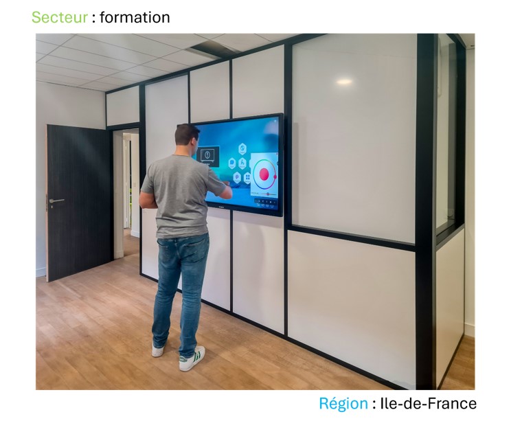Un centre de formation parisien spécialisé dans la réorientation et la réinsertion professionnelle des jeunes de 16 à 25 ans s’est équipé de 7 écrans interactifs de 65 pouces. L’objectif est de créer un environnement pédagogique moderne et stimulant pour des cours plus dynamiques et engageants. Grâce à la technologie interactive présente dans 7 salles de formation, les stagiaires peuvent interagir activement, prendre des notes, dessiner et annoter des documents. Le formateur, quant à lui, peut guider les stagiaires dans leurs recherches et leur permettre d’améliorer leur CV et leur lettre de motivation directement sur l’écran.