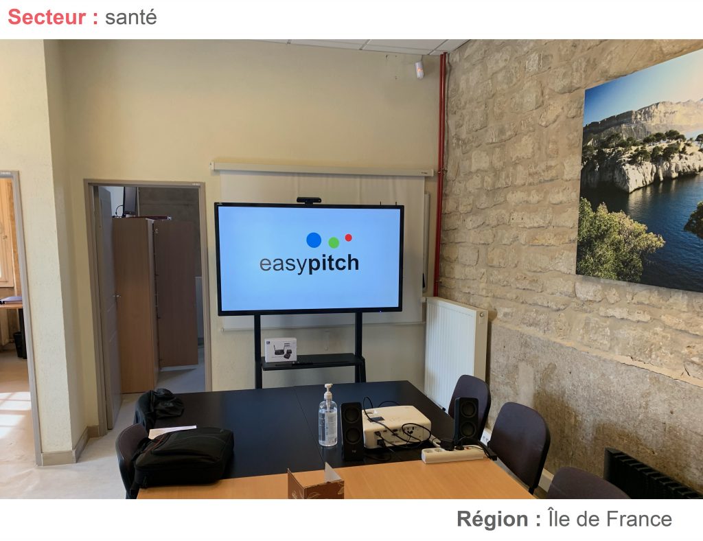 Un écran interactif Easypitch sur un support mobile a été installé, avec d’autres accessoires, dans le huddle room d’un centre hospitalier et notamment dans le service de cancérologie. Cet outil de haute technologie et interactif vient remplacer le vidéoprojecteur standard posé sur la table, et transformer la salle en un espace collaboratif. Il est mis à disposition des professionnels du service pour faciliter la gestion des différents dossiers médicaux et rendre les réunions plus efficaces et rapides.